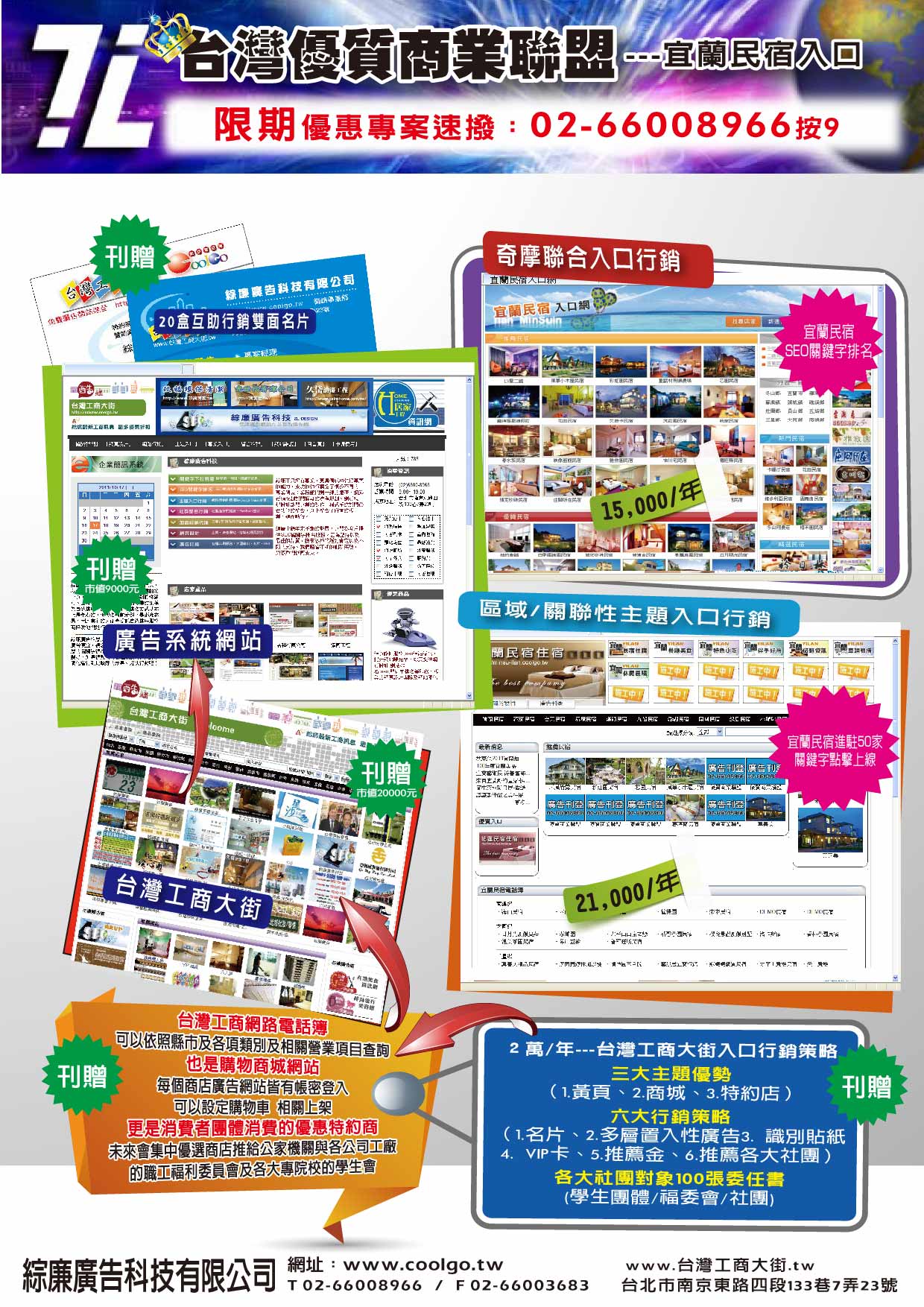 -人氣王精選民宿 廣告刊登專線:(02)6600-8966 宜蘭派出所服務電話:(03)959-1651